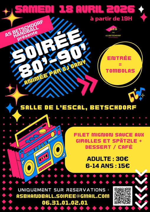 L’AS Betschdorf Handball est heureux de vous présenter sa SOIRÉE 80’s–90’s